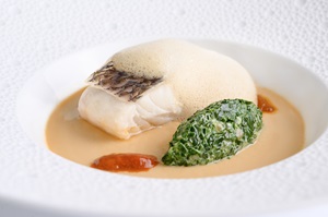 - Dentice su crema cotta di ricci, bieta e schiuma di caffè