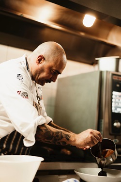 “È stata mia nonna a insegnarmi a cucinare ed è da lei che ho imparato il rispetto della stagionalità […] La mia è una cucina della memoria, non solamente per la presenza dei piatti della tradizione ma anche per i ricordi di viaggio e gli stimoli che mi fornisce l’ambiente circostante.”
