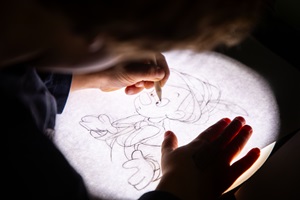 Quella valigia ha incontrato prima la carta e in seguito la celluloide, compiendo il mirabolante tuffo nel cinematografo ma sempre partendo dal disegno a mano per mezzo di matite, pastelli, carboncini, acquerelli, tempere e acrilici. La computer grafica e l’animazione digitale hanno permesso la transizione tecnologica, zenit dell’innovazione scaturita dal genio Disney.