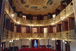 Nello stesso stabile al piano superiore si può contemplare il Teatro La Rondinella, esemplare teatro bomboniera costruito a fine ‘700 quasi interamente in legno e un secolo dopo riprogettato in stile liberty dall’ingegnere Virgilio Tombolini utilizzando materiali come ferro e leghe metalliche.